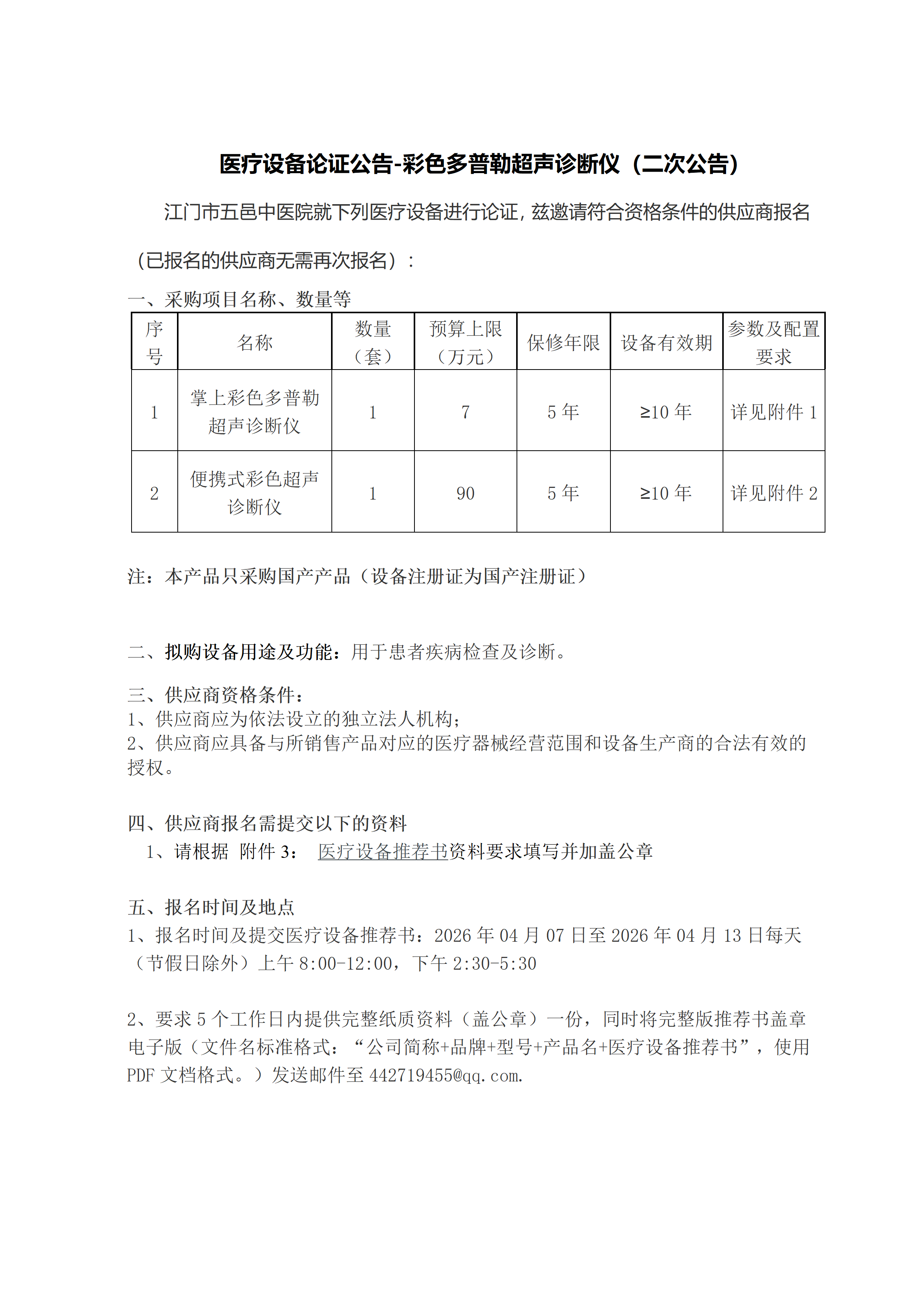 医疗设备论证公告-彩色多普勒超声诊断仪(二次公告)